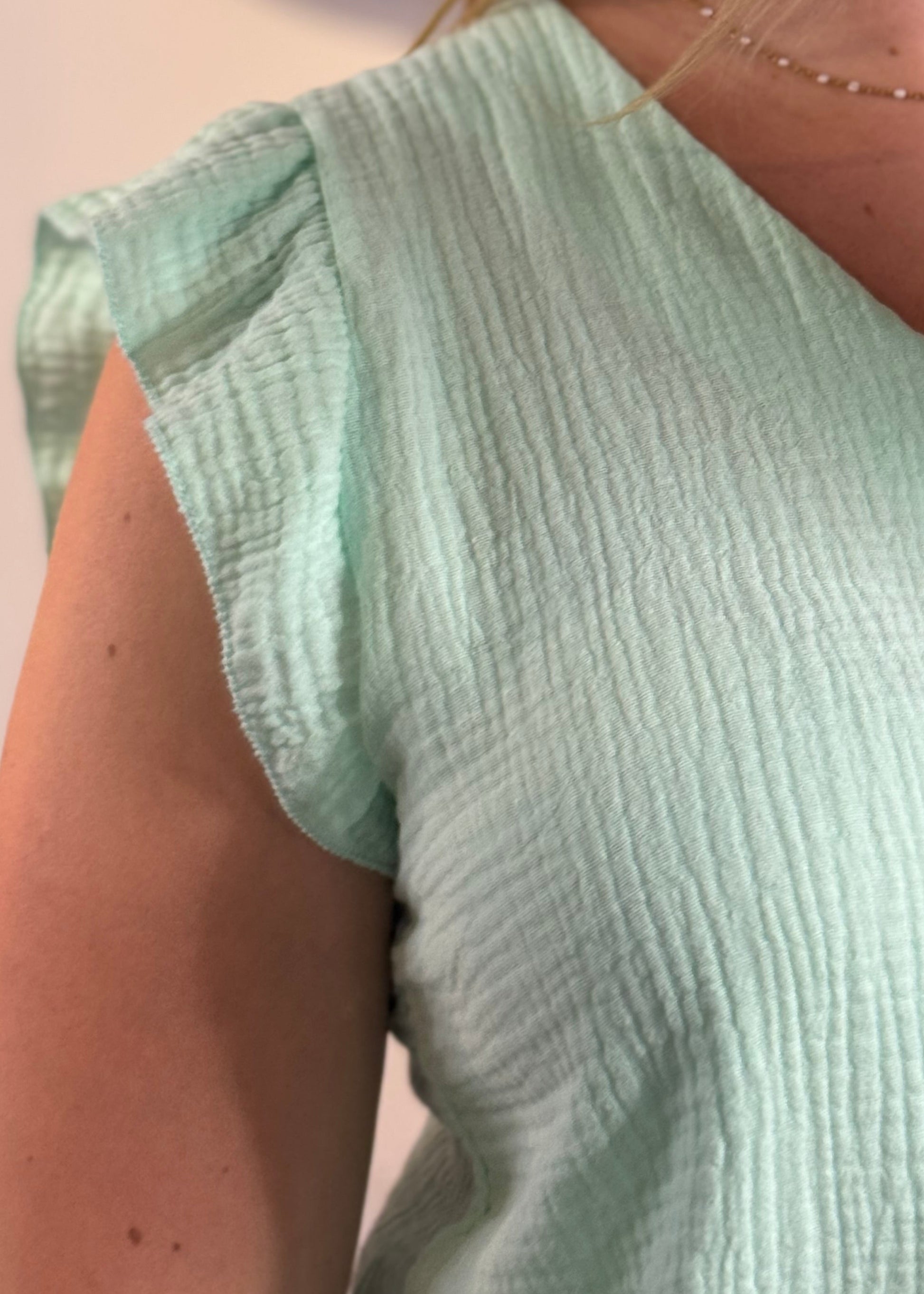 Légère, douce et pleine de charme, cette blouse en gaze de coton est un vrai coup de cœur. Son col V flatteur et ses jolis volants aux épaules apportent une touche féminine et délicate. Idéale pour un look bohème chic au quotidien.