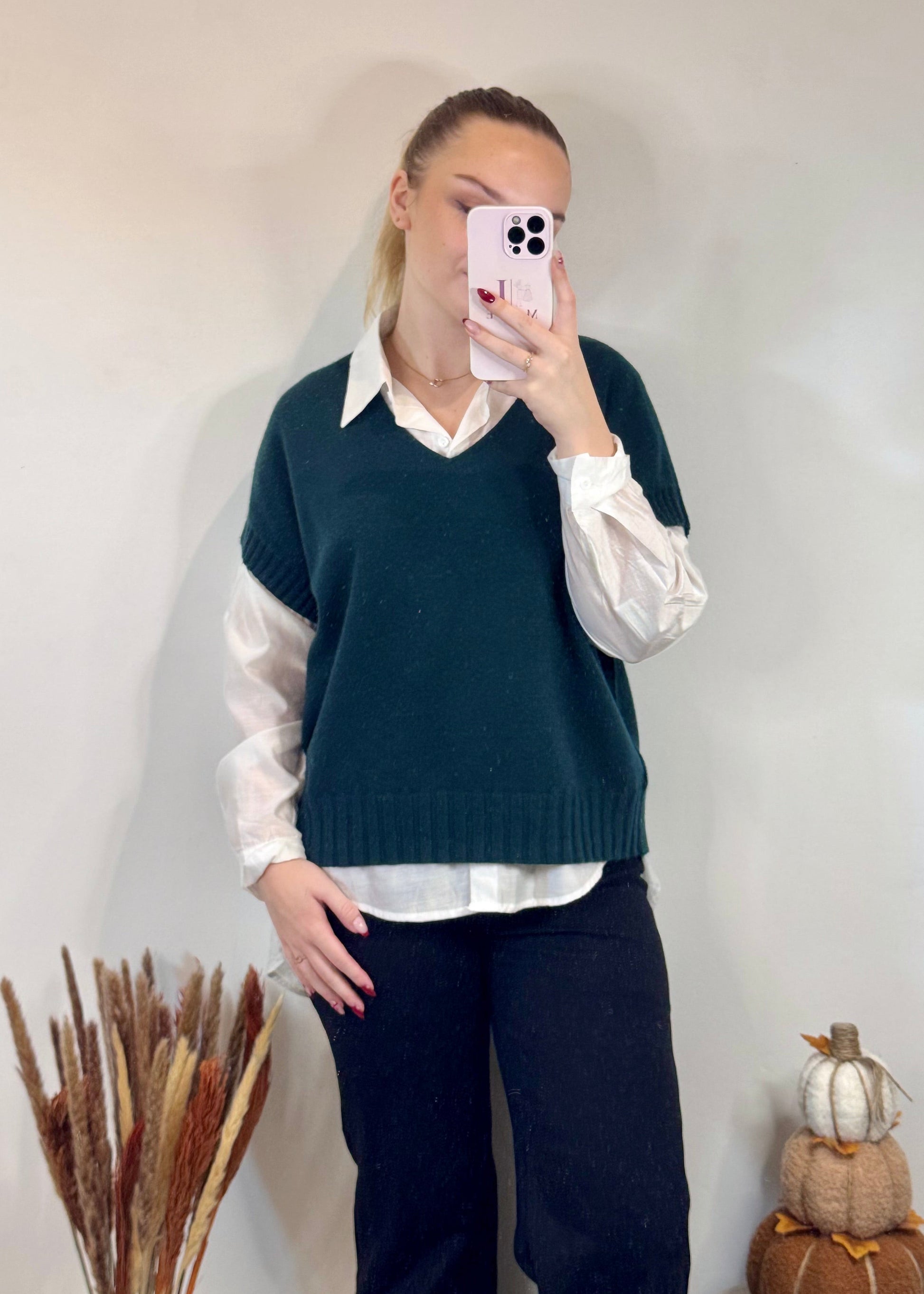Un pull sans manche chic et chaleureux, qui apporte une touche de couleur sophistiquée à toutes tes tenues