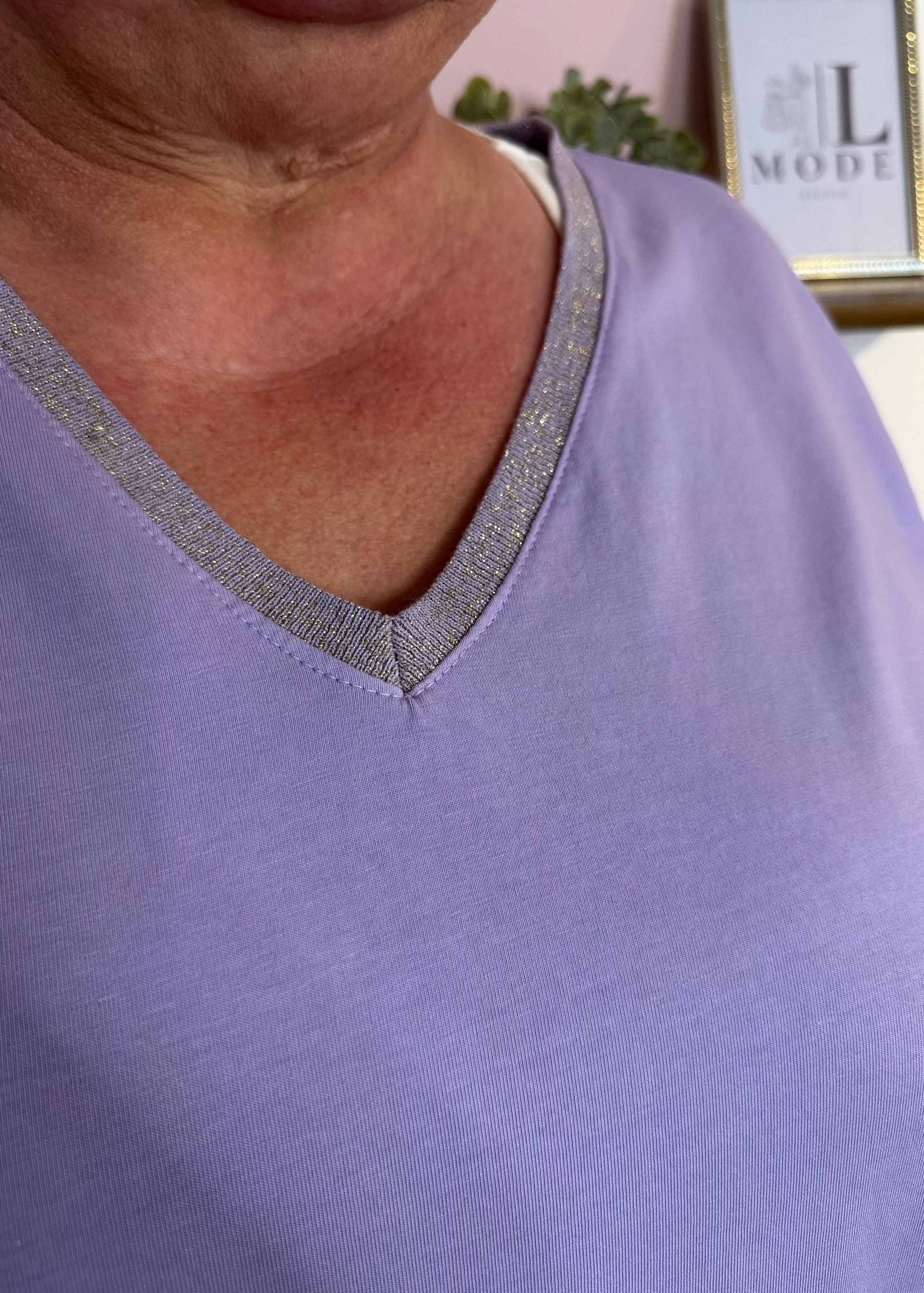 Un t-shirt confortable et féminin, sublimé par un col V orné de paillettes pour une touche brillante tout en subtilité.